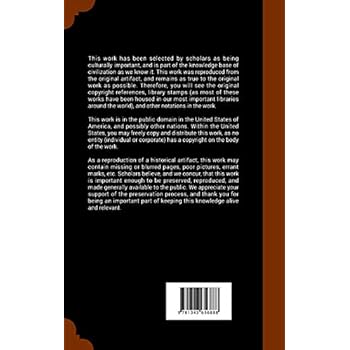 This work has been selected by scholars as being culturally important, and is part of the knowledge base of civilization as we know it. This work was reproduced from the original artifact, and remains as true to the original work as possible. Therefore, you will see the original copyright references, library stamps (as most of these works have been housed in our most important libraries around the world), and other notations in the work.This work is in the public domain in the United States of America, and possibly other nations. Within the United States, you may freely copy and distribute this work, as no entity (individual or corporate) has a copyright on the body of the work.As a reproduction of a historical artifact, this work may contain missing or blurred pages, poor pictures, errant marks, etc. Scholars believe, and we concur, that this work is important enough to be preserved, reproduced, and made generally available to the public. We appreciate your support of the preservation process, and thank you for being an important part of keeping this knowledge alive and relevant.