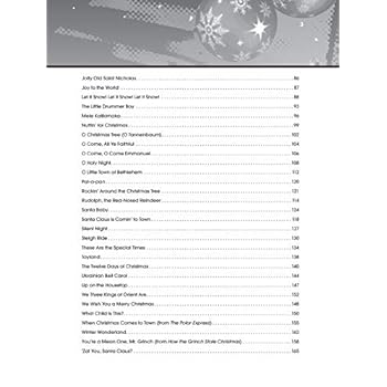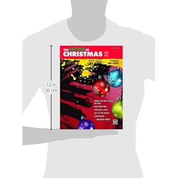 This is an absolutely wonderful book of Christmas music. Beautifully arranged with almost all the music I could ever want. Not too difficult but had to wait a few months to grow into being able to play both hands. Thank you for the arrangements. Nice size and nice binding that opens fairly flat for the music stand. Guitar chords are an added bonus on top of each staff. Hope the pics help.